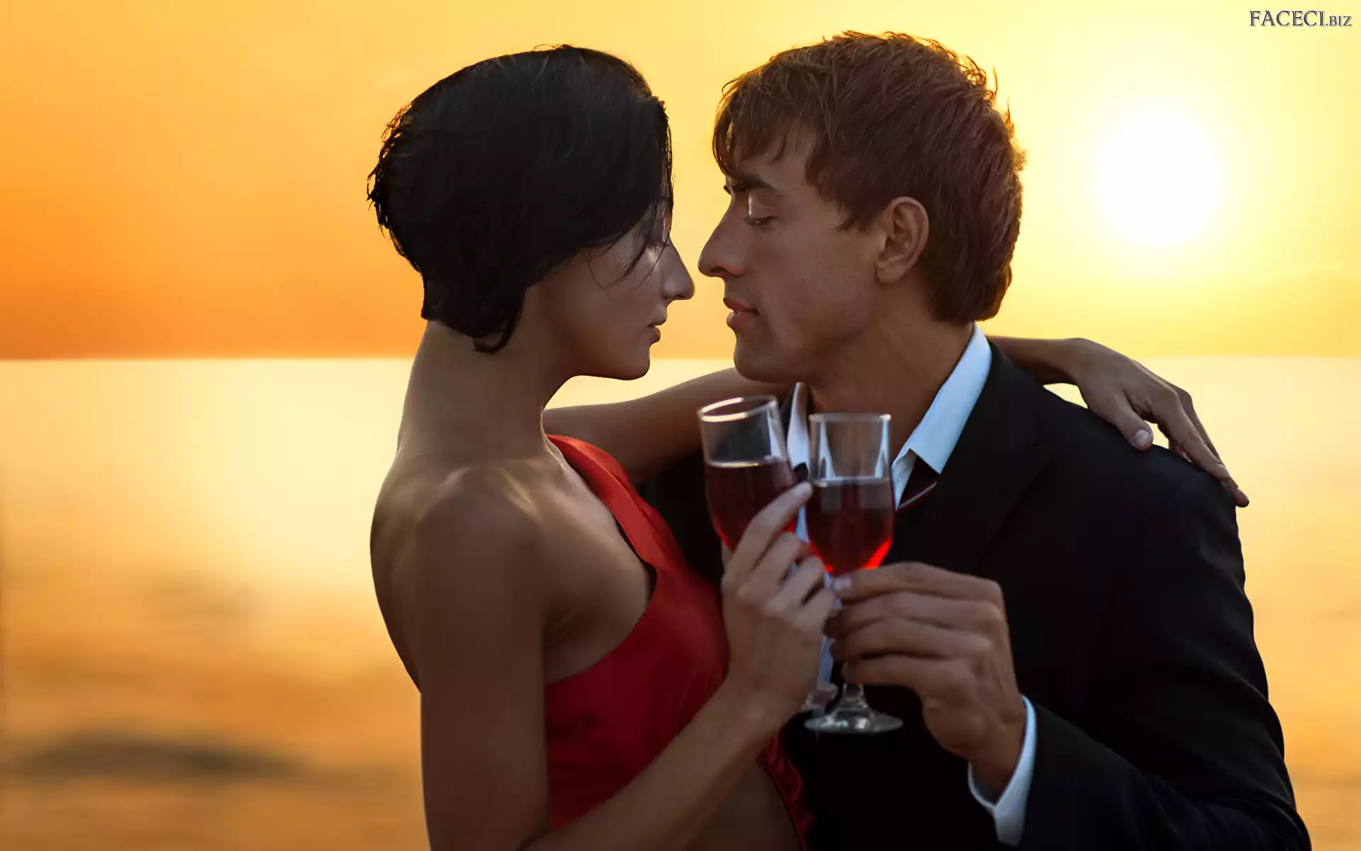 Kieliszki, Para, Ludzie, Alkohol, Wino, Miłosne, Zakochani - faceci.biz